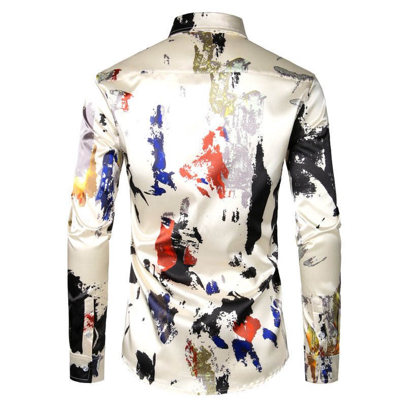 Men's Silk Splashing Ink Print Shirt