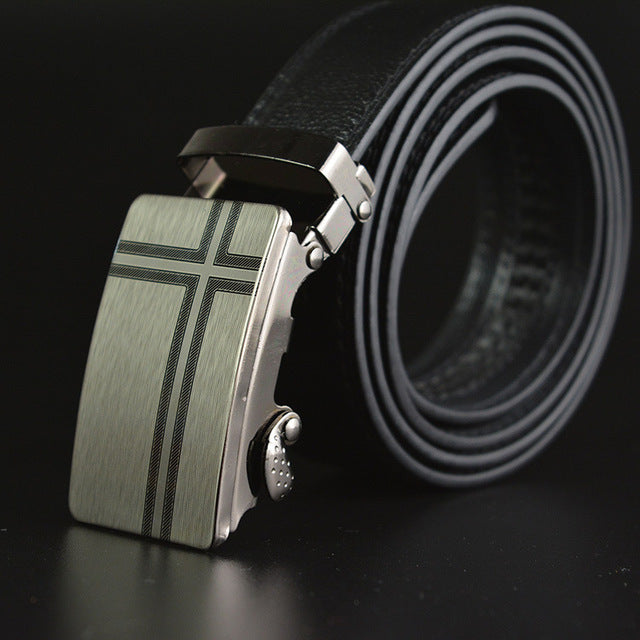 Mens Business Style Belt Black Pu Leather Strap Automatic Buckle